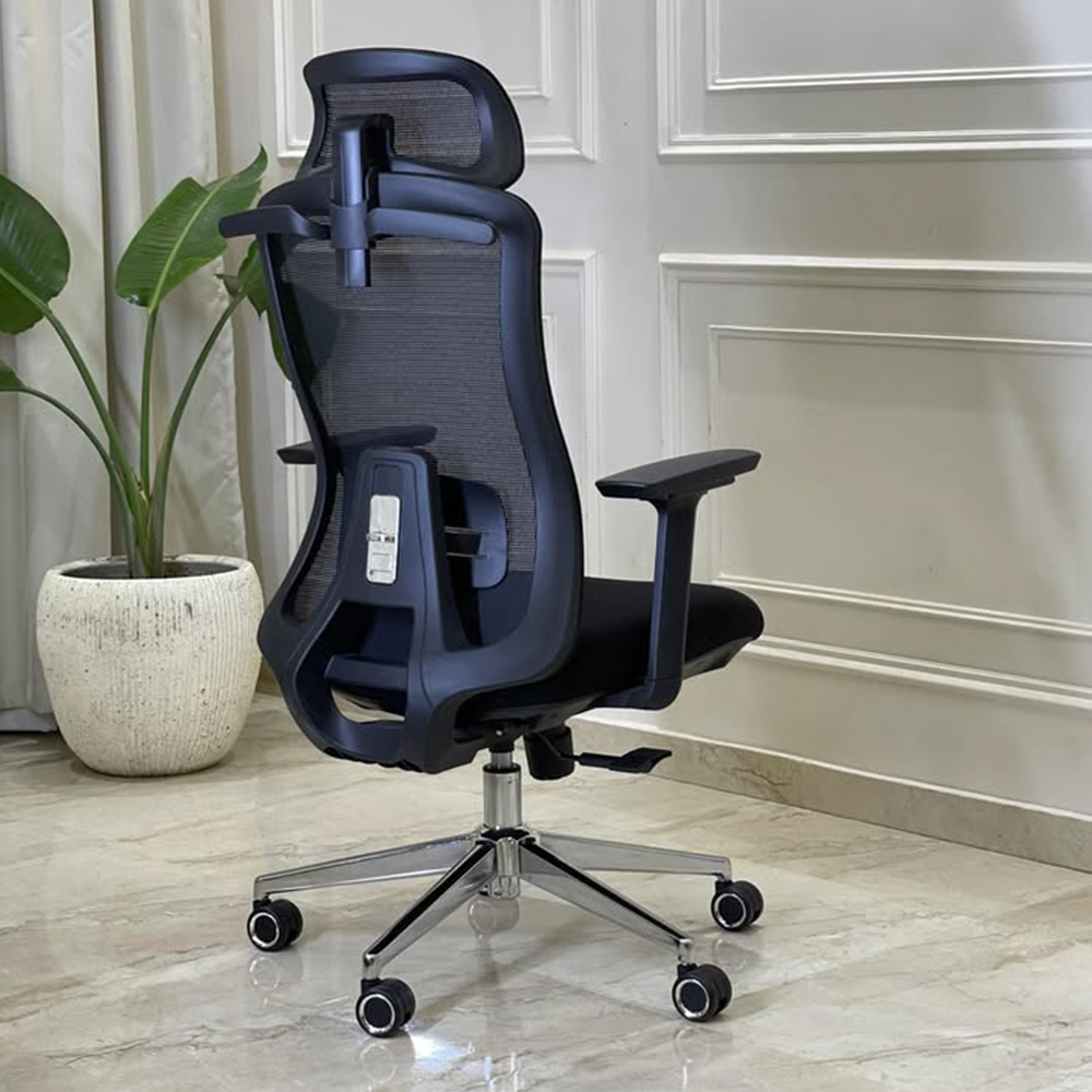كرسي 2558 مستورد بالكامل يجمع بين ظهر شبك طبي مع دعم قطني متحرك ومسند رأس 2D قابل للتعديل لراحة مثالية خلال الجلوس الطويل.